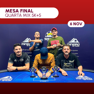 Ontem tivemos nos feltros do Sierra tivemos o Quarta Mix, torneio que contou com R$5.000 em premiação + 5 vagas para o BH Nuts Halloween, que acontecerá nesta quinta-feira e contará com R$20.000 + 20 vagas para o M.E do CMP.