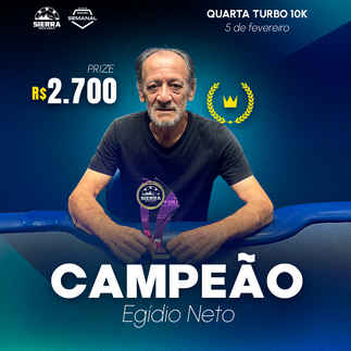 Ontem tivemos o Quarta Turbo, aqui no Sierra, que contou com R$10.000,00 em premiação, o torneio tem esse nome por ter as blinds menores, são somente 20 minutos, por isso, o torneio acaba mais cedo.