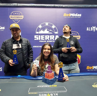 O Dia Final começou às 19h deste sábado (10) e só terminou no fim da madrugada de domingo. Quem brilhou na mesa final e conquistou o título de campeã foi a jogadora Gabriela Cristina, que levou uma forra de R$ 7.160 + 1 vaga para o Main Event 120K da 6a etapa/2020 do Campeonato Mineiro de Poker.